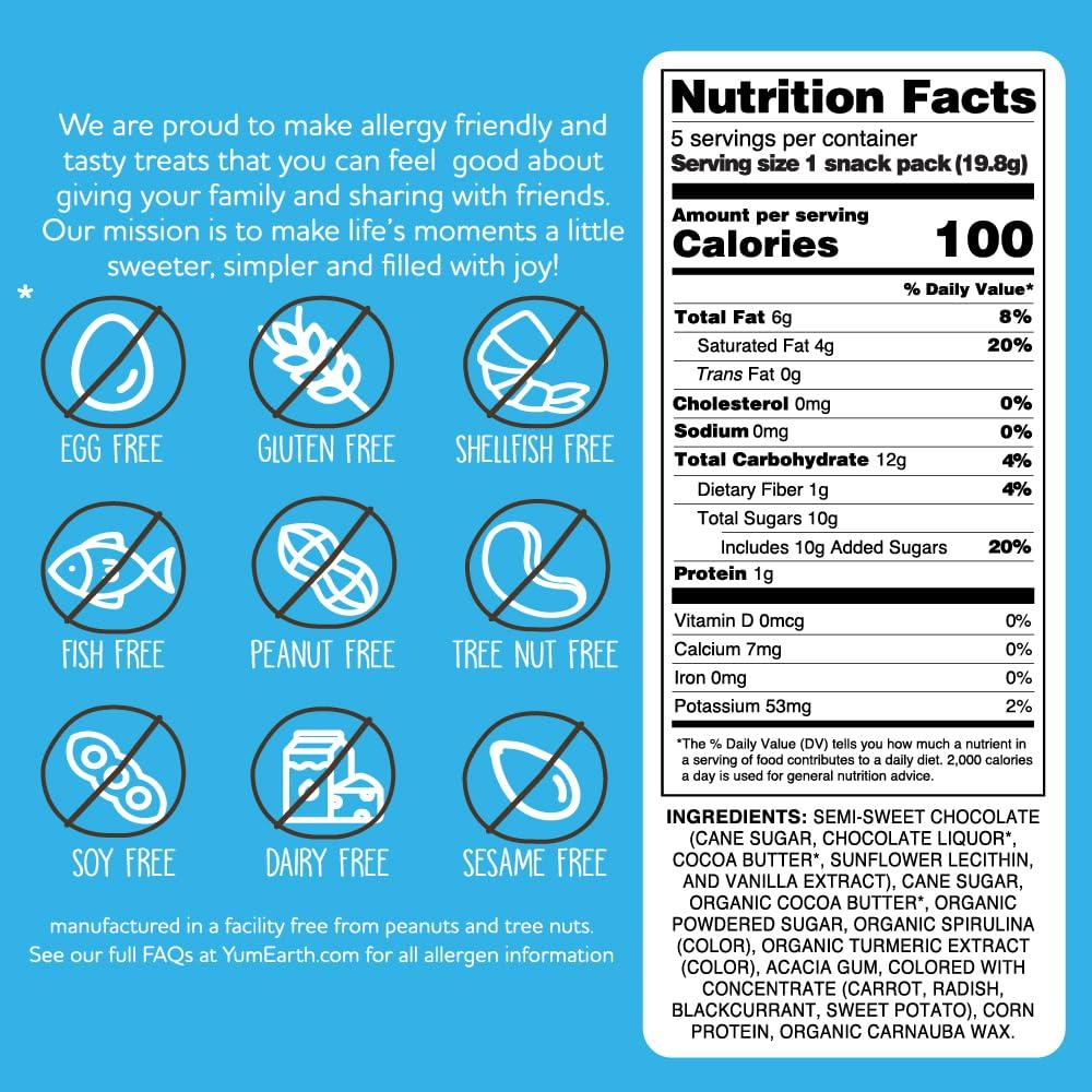 - Get your hands on our exclusive YumEarth Choco Yums, 5-0.7 Ounce Snack Packs, Allergy Friendly, Gluten Free, Non-GMO, Vegan, No Artificial Flavors or Dyes (3.5 Ounce (Pack of 1)) collection, now at a discounted price.