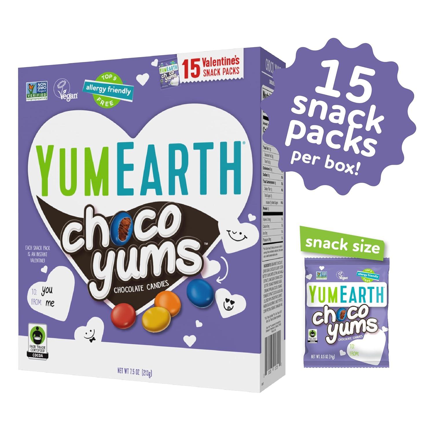 YumEarth Valentine’s Choco Yums, 15 Individually Wrapped Snack Packs, Allergy Friendly, Gluten Free, Non-GMO, Vegan, No Artificial Dyes