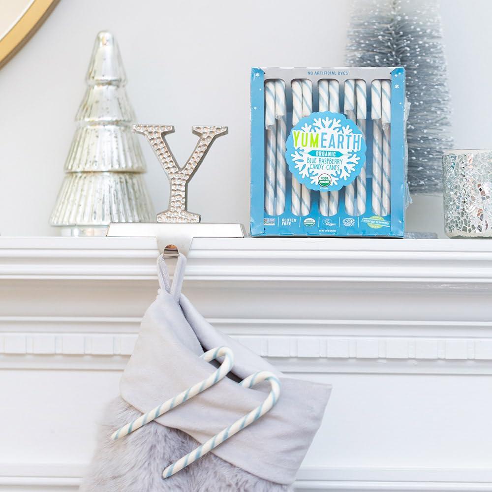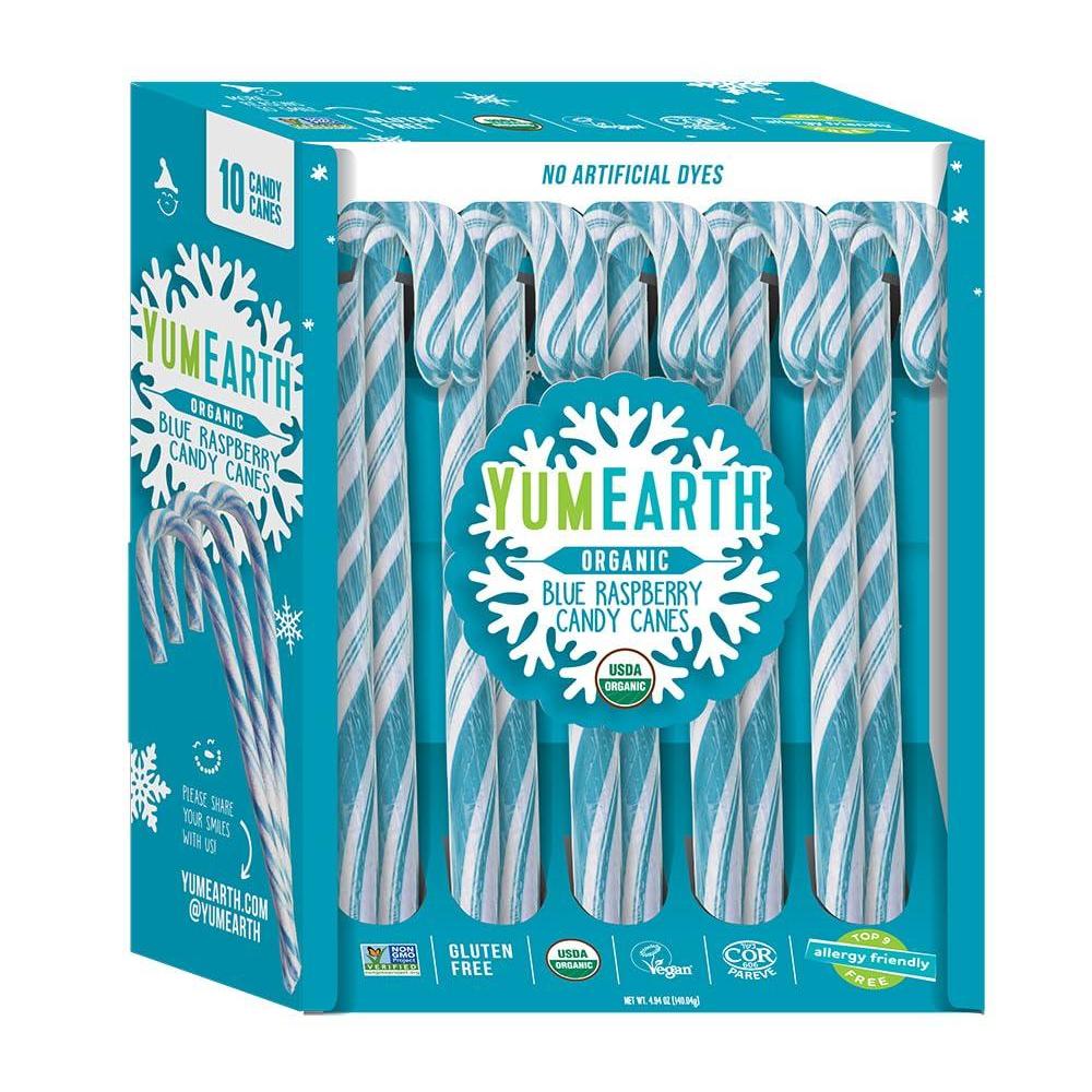 YumEarth Organic Candy Canes – Individually Wrapped Full Size Blue Raspberry Candy Canes – Dye Free, Allergy Friendly, Non GMO, Gluten Free, Vegan – 10 Count (Pack of 1)(Blue Raspberry Candy Canes)