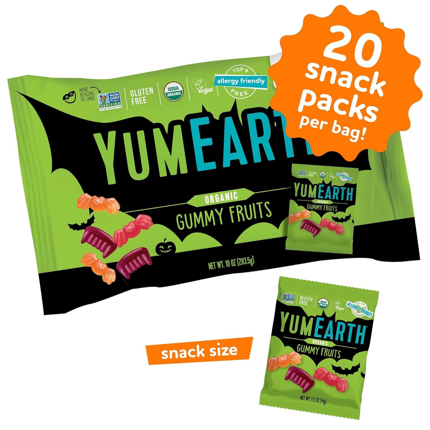 YumEarth Organic Halloween Candy, Allergy Friendly, Gluten Free, Non-GMO, Vegan, No Artificial Flavors or Dyes (20 Count (Pack of 1), Gummy Fruits)(Gummy Fruits)